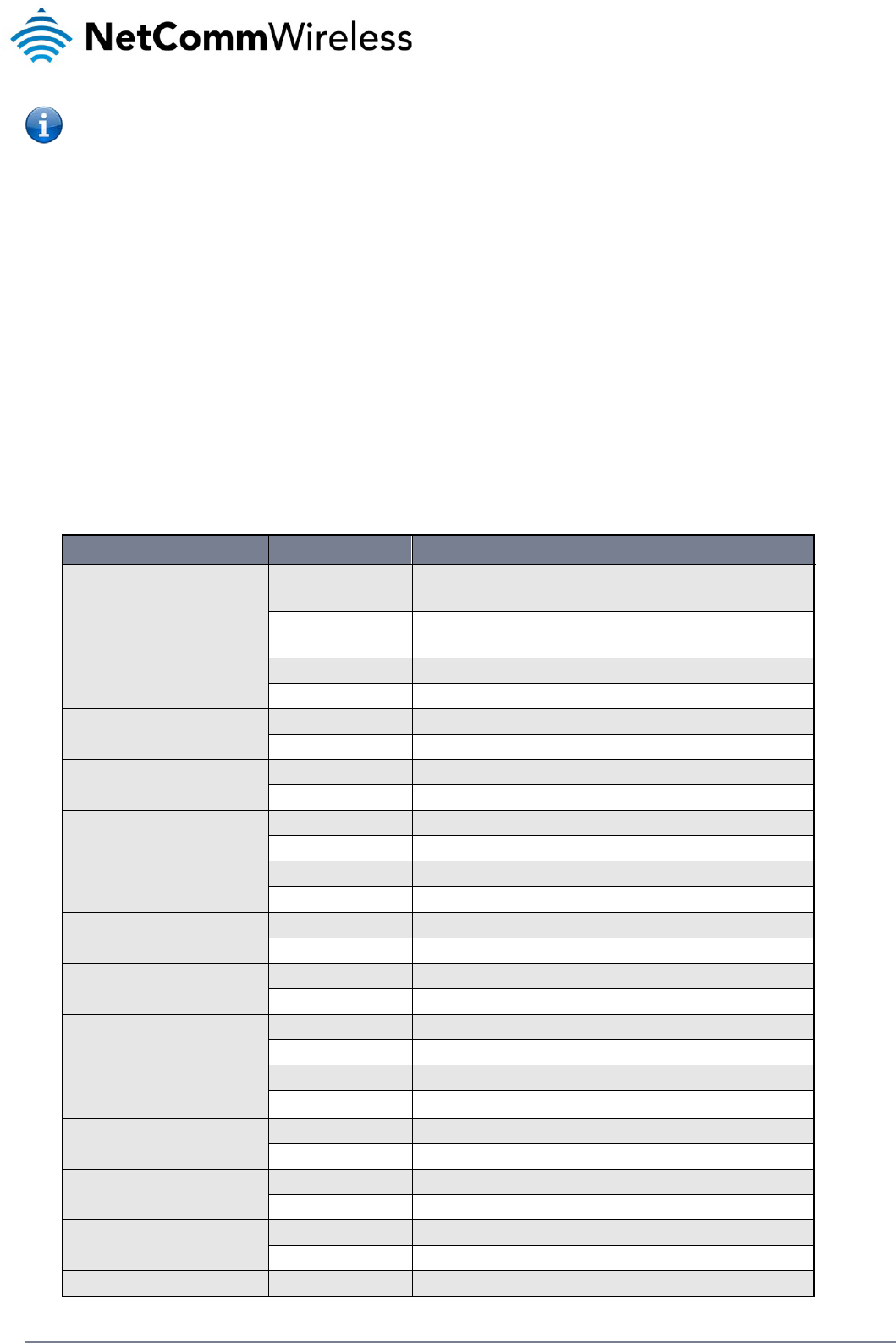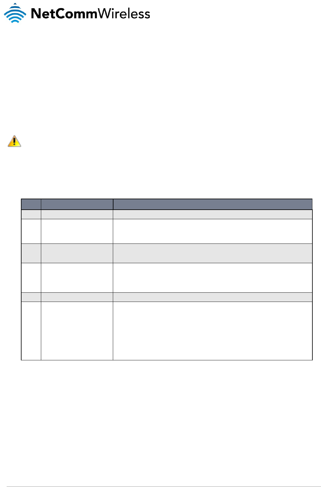 The information contained herein is proprietary to NetComm Wireless. No part of this document may be translated, transcribed,