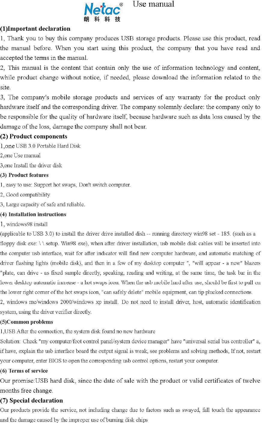 Netac Technology Co., Ltd USB 3.0 Portable Hard Disk K910 Use manual