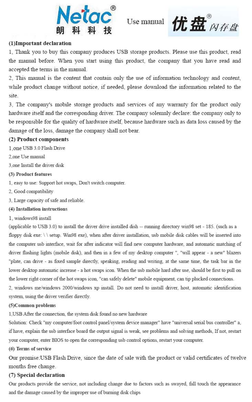 Netac Technology U903 USB 3.0 Flash Drive User Manual K910 Use manual