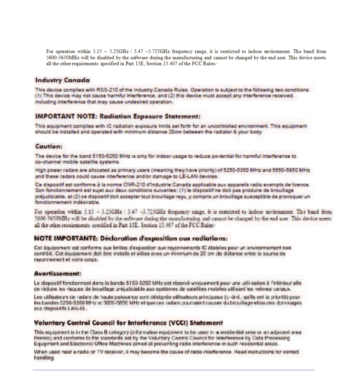For operation within 5.15 ~ 5.25GHz / 5.47 ~5.725GHz frequency range, it is