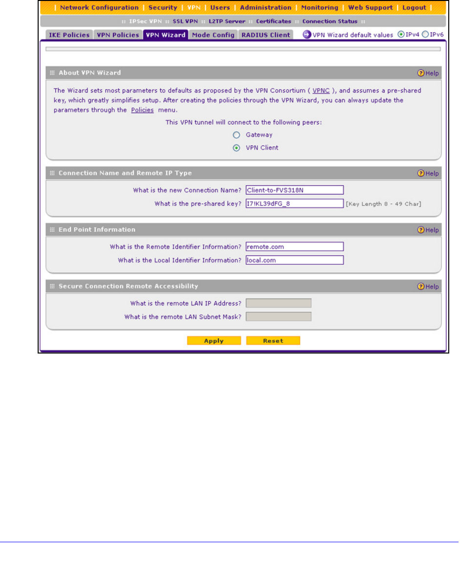 - Use the IPSec VPN Wizard for Client and Gateway Configurations