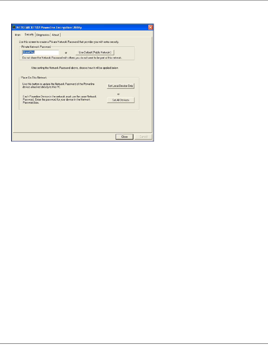 2. Start the PowerLine encryption utility on the remote computer and select the Security tab.