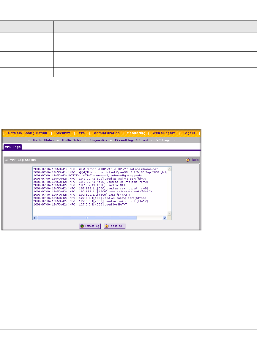 VPN Logs screen 6-25
