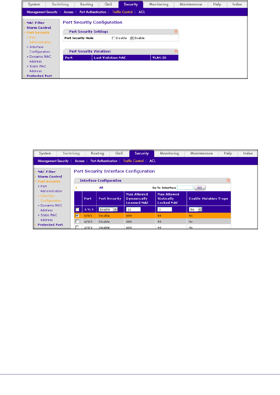 - Set the Dynamic and Static Limit on Port 1/0/1