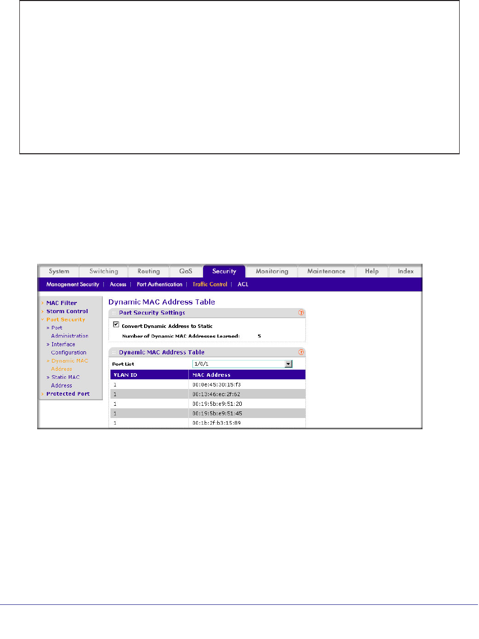 - Convert the Dynamic Address Learned from 1/0/1 to a Static Address