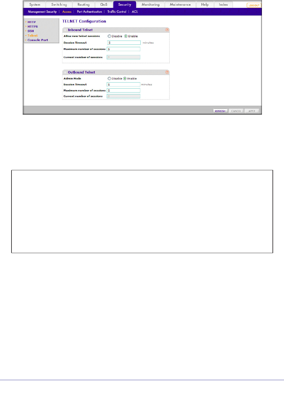 show telnet 335