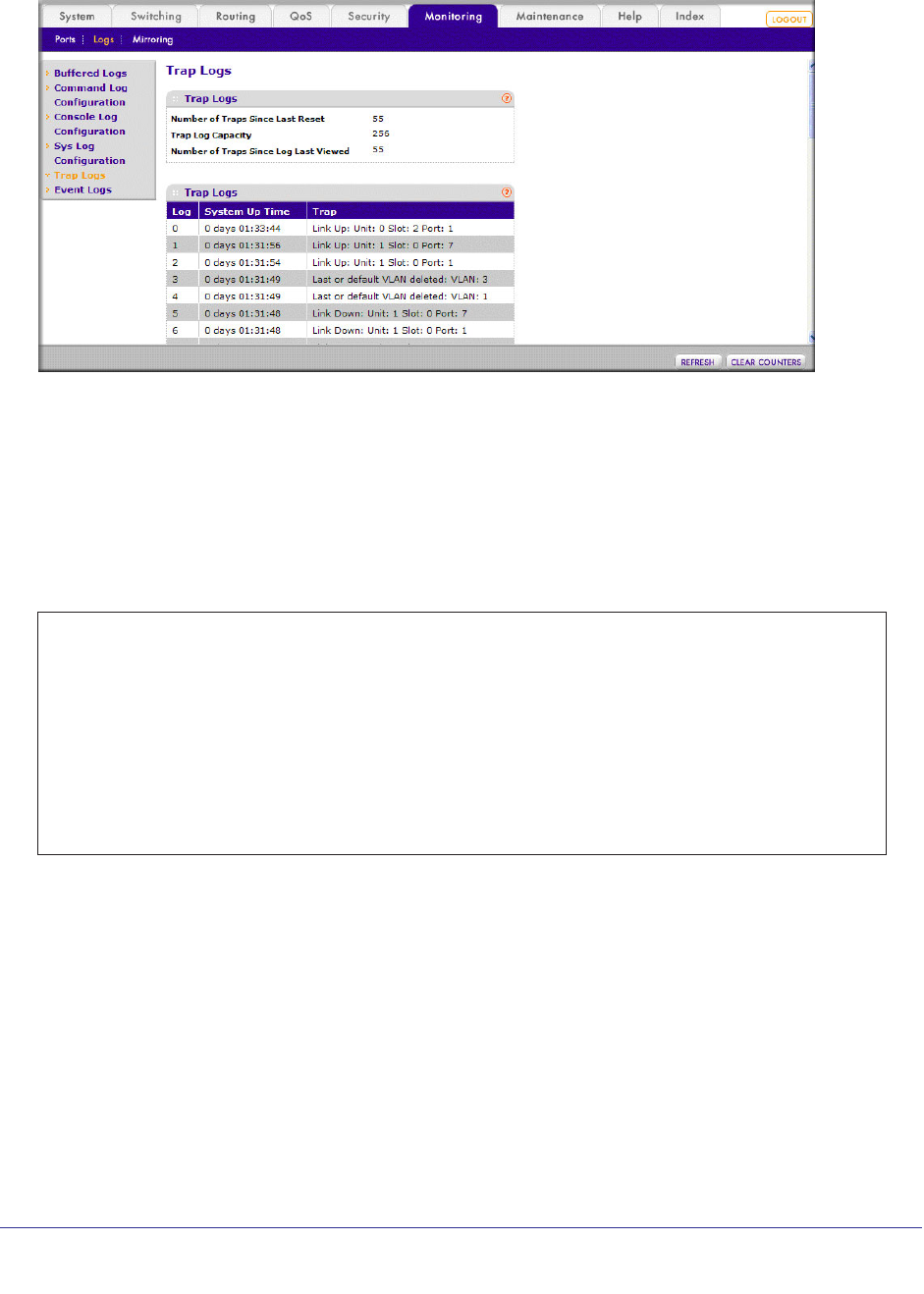 show logging traplogs 343