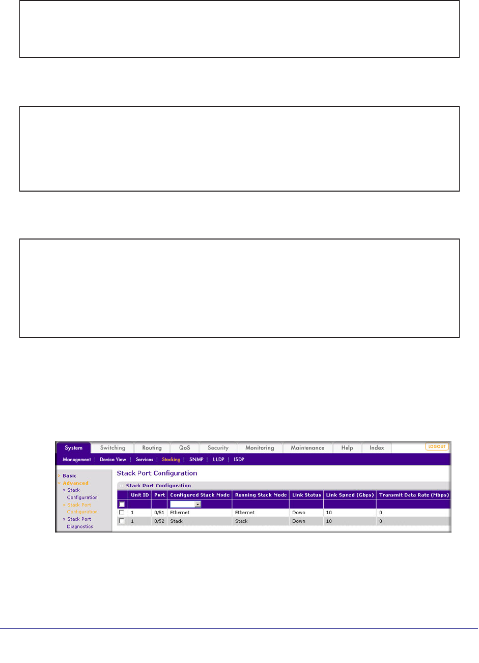 stacking ports, Ethernet configuration 355