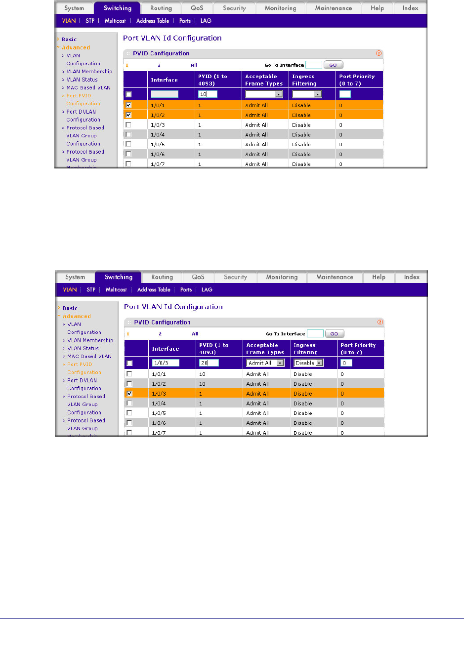 - Assign VLAN3 as the Default VLAN for Port 1/0/2