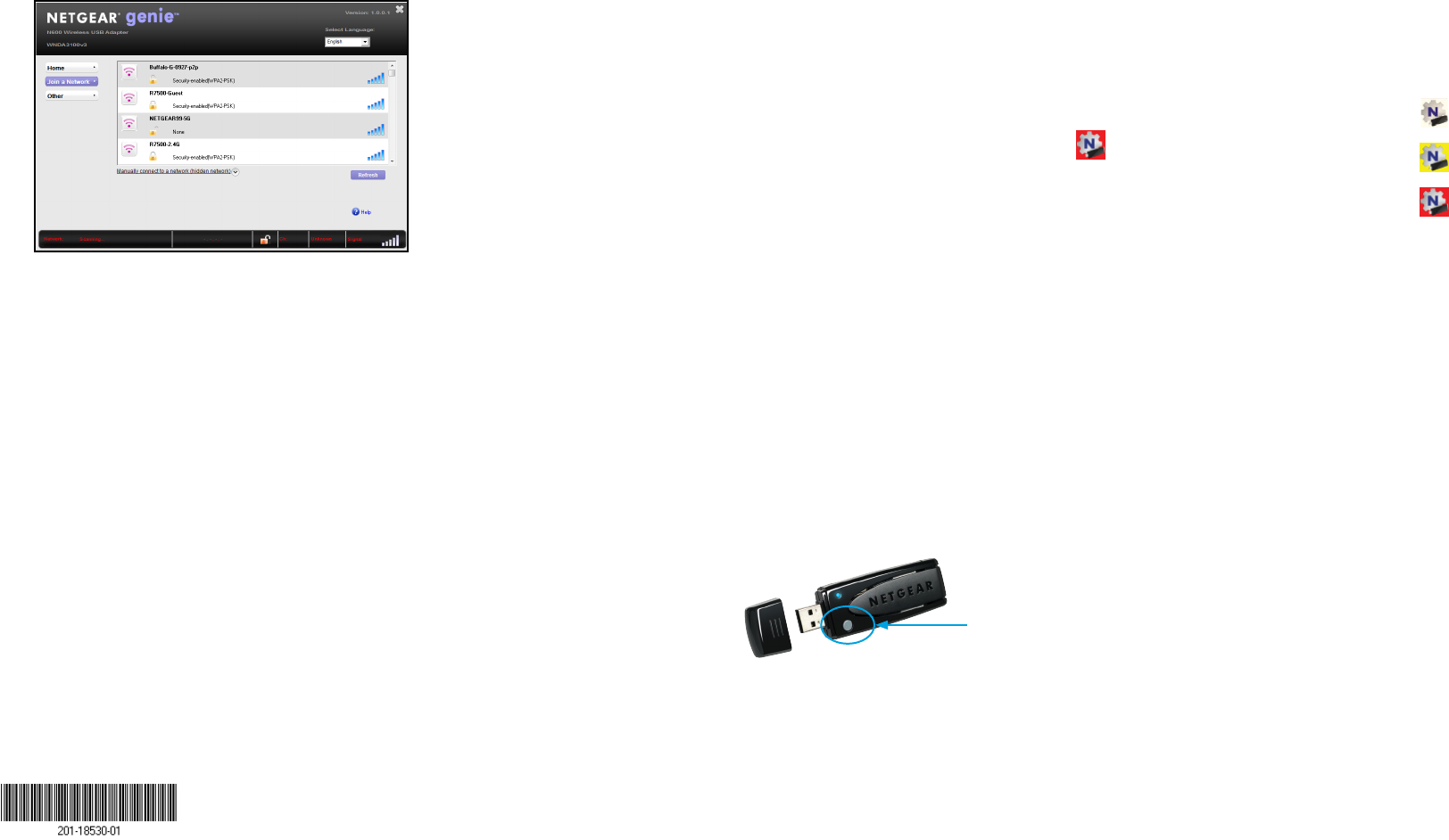 When you install your adapter, the adapter’s NETGEAR genie icon displays in