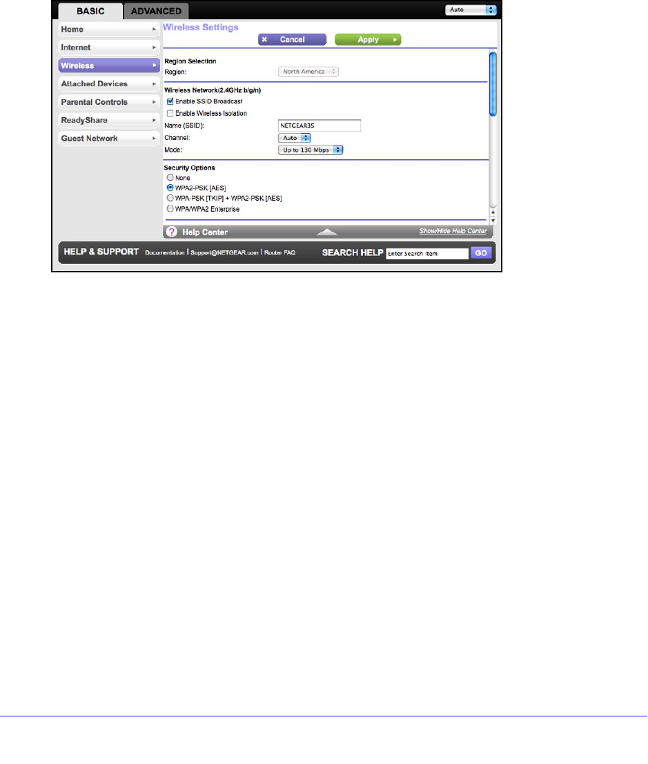 Wireless Settings screen 26