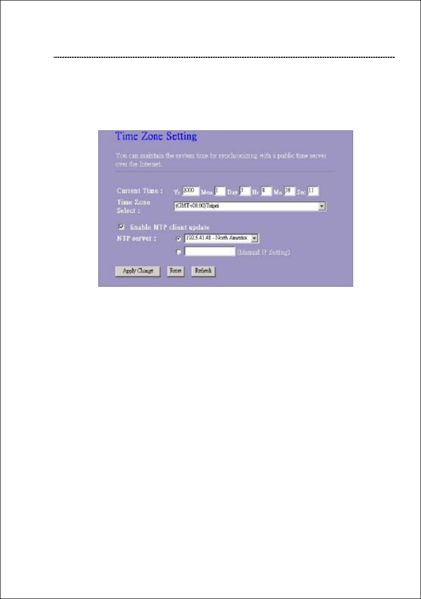 enter a NTP server. Click the “Apply Change” button after your configuration.