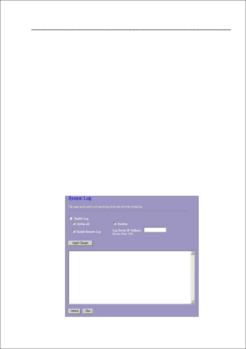 This System Log page shows the information of the current activities on