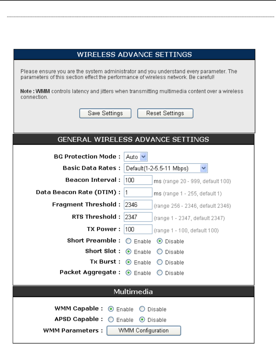802.11g: 54/ 48/ 36/ 24/ 18/ 12/ 9/ 6Mbps