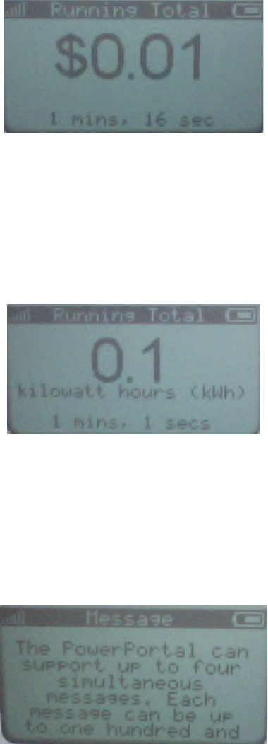 The Running Total screen will show you your accumulated energy use in kilowatt hours