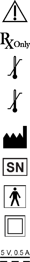 Direct current (DC) 5 V (volts), 0.5 A (amperes)