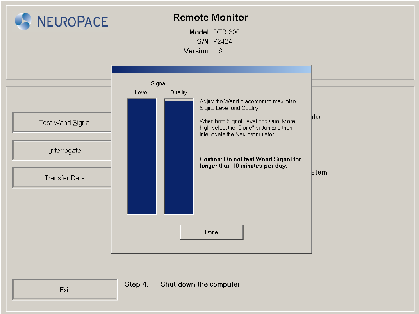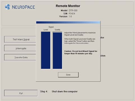 facing the Neurostimulator. Data collection should continue when the signal strength is