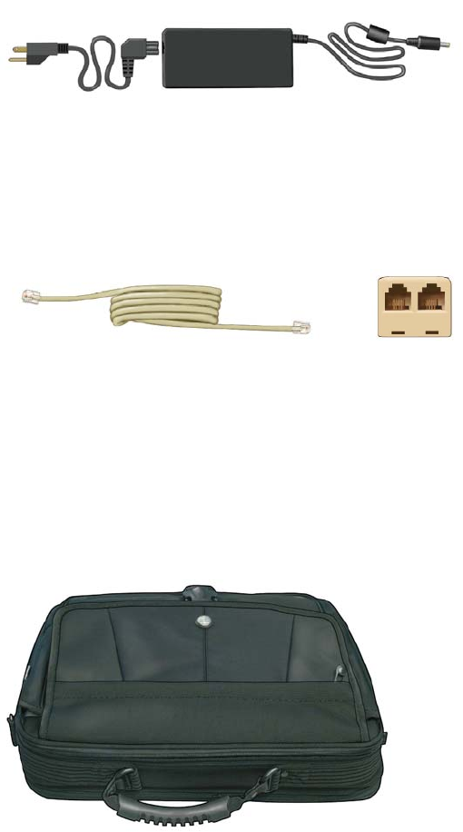 The power cord powers the laptop computer and charges its battery. The laptop comes