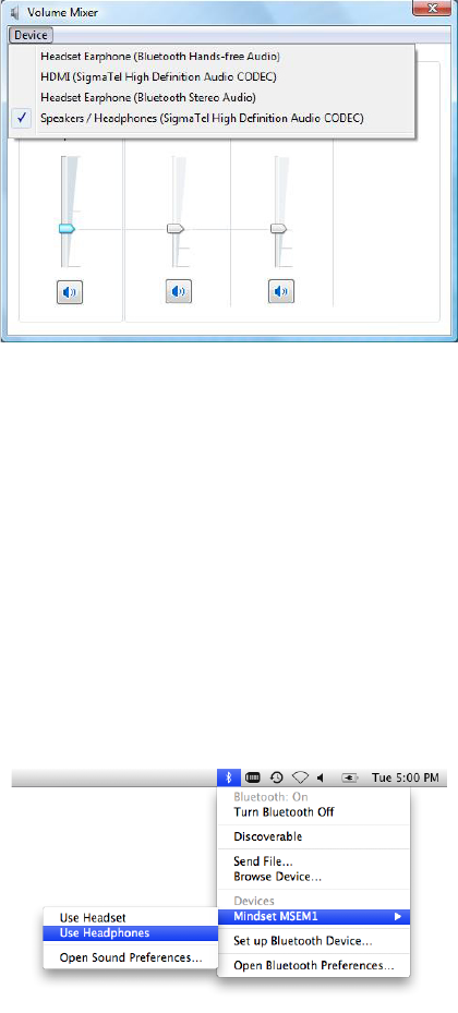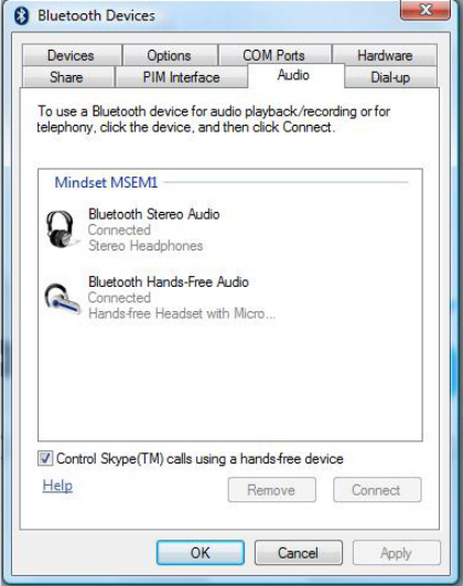 1. Verify that the MindSet Bluetooth Audio is connected to the PC.