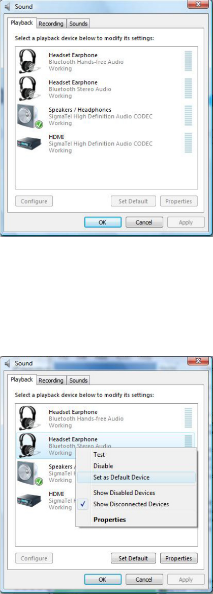 (b) Set the default playback device in the Sound Control Panel to "Bluetooth Audio."