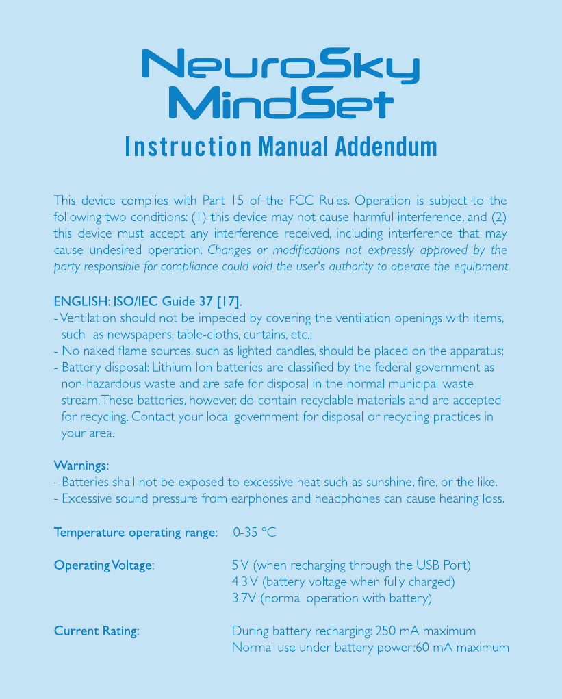 To nd new and exciting ways to unlock the full potential of you MindSet, visit the NeuroSky Store