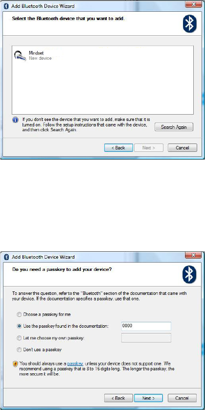 instructions under Setting Up Your MindSet, paying particular attention to Bluetooth Dongle Setup,