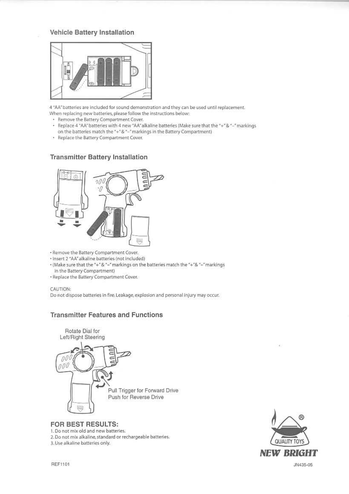 New Bright Industrial Co Ltd Remote Control Toy Transmitter Users Manual Part 1