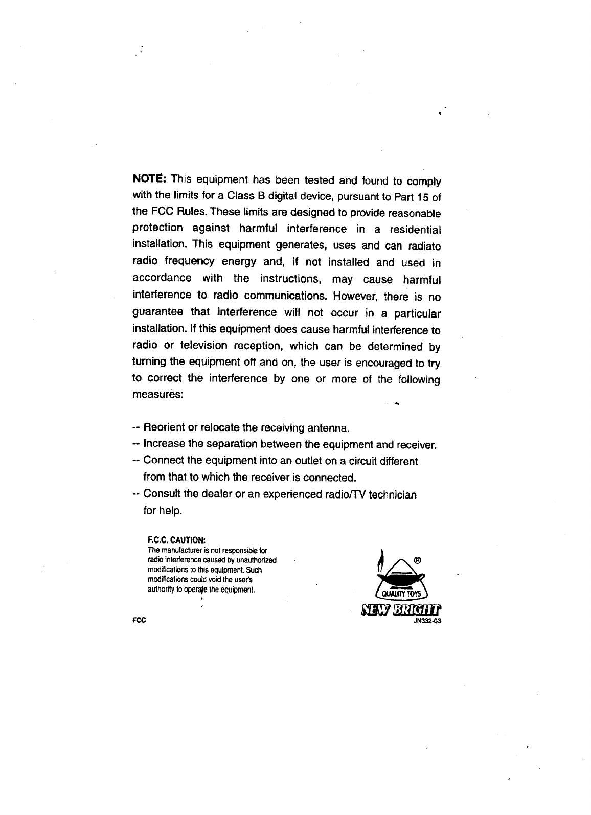 New Bright Co 1840HS RC Toy Transmitter User Manual