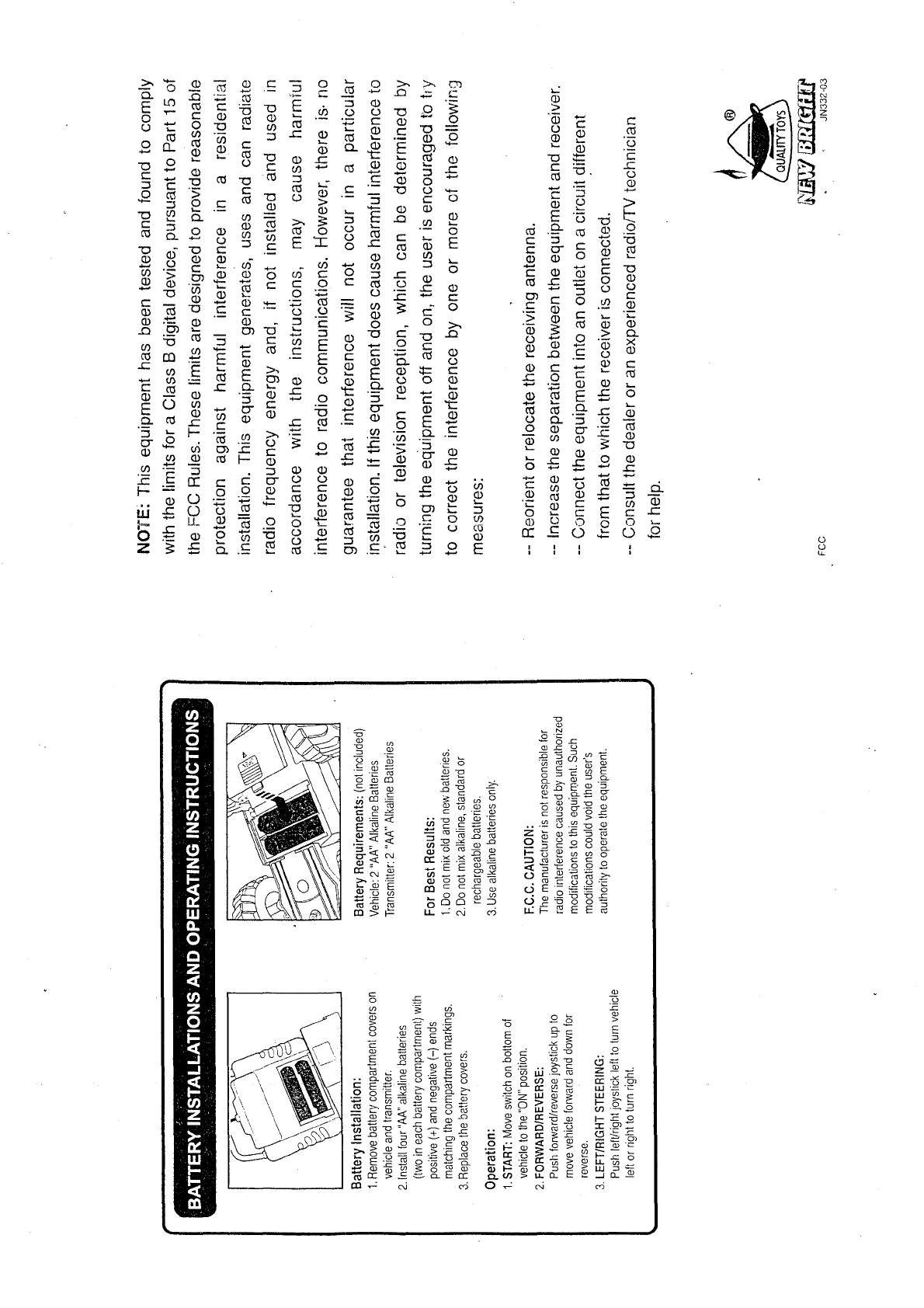 New Bright Co 24244HK Radio Control Toy Transmitter User Manual