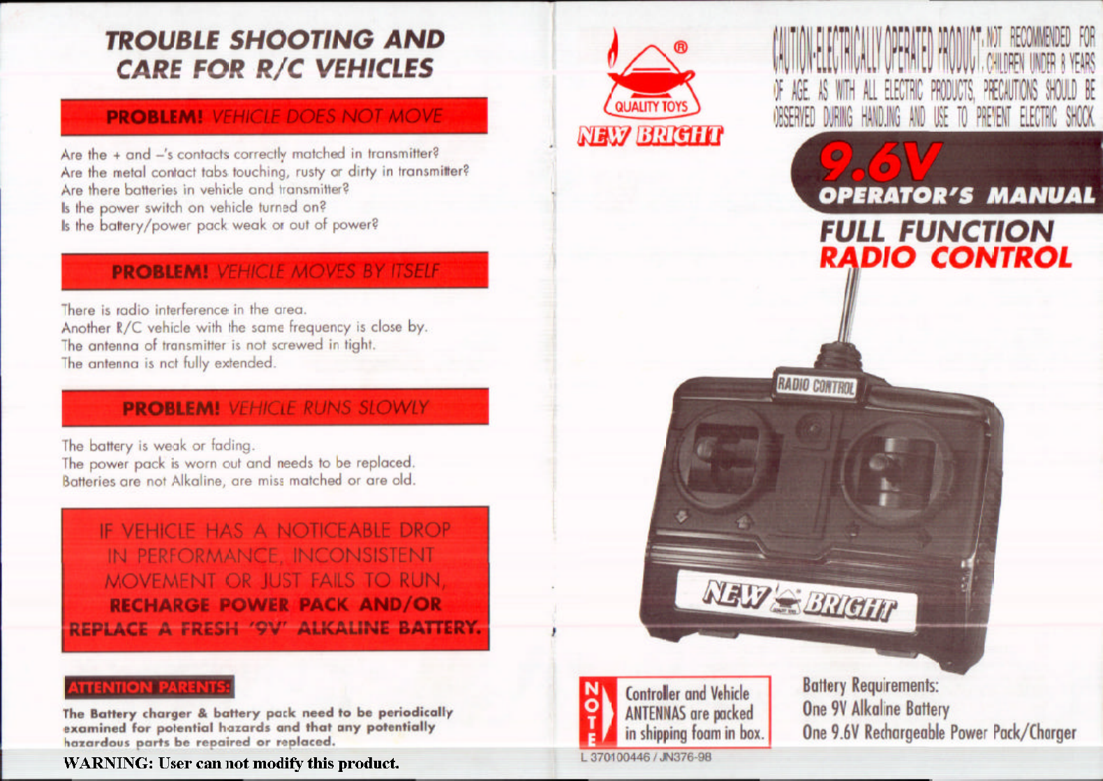New Bright Co 3400D-R01 Remote Control Toy Transmitter User Manual 35