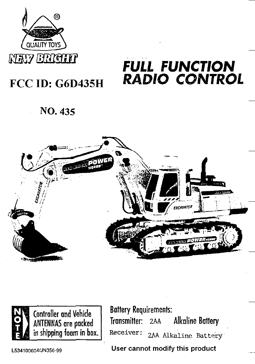 New Bright Co 435H Toy Remote Control User Manual Unknown