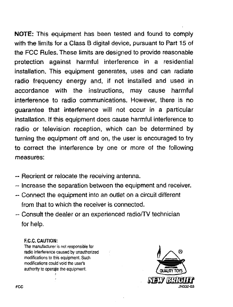 New Bright Co 4GHHS Radio Control Toy Transmitter User Manual FCC 20090213