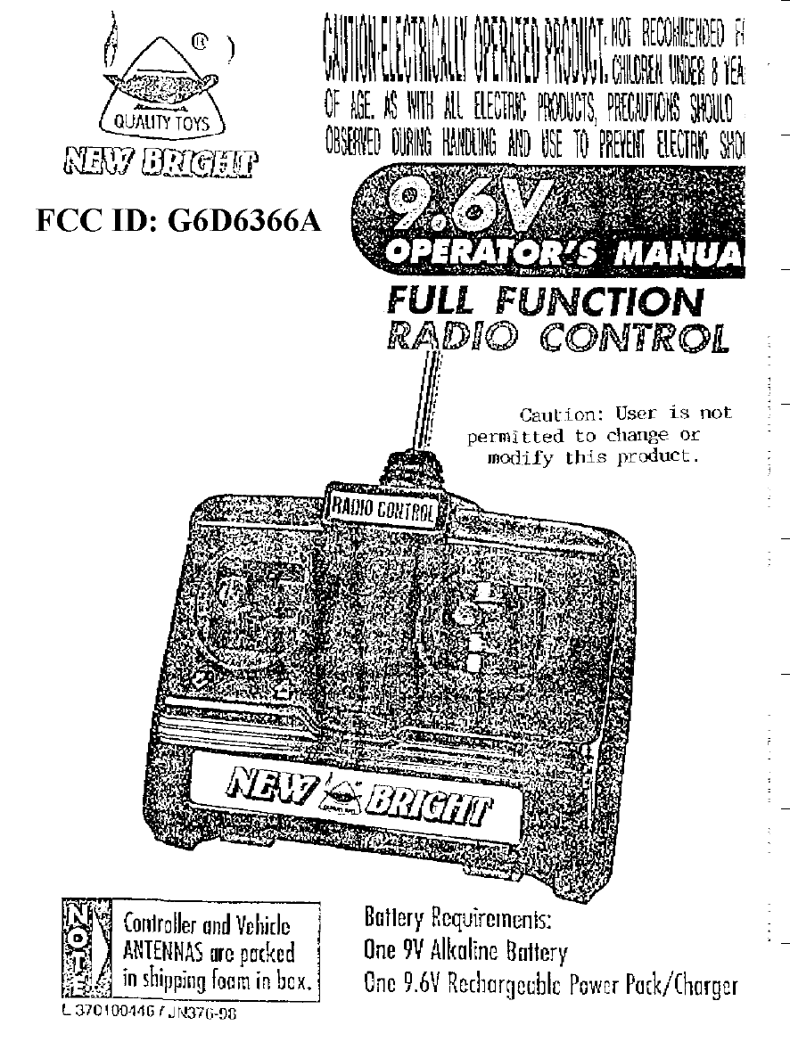 New Bright Co 6366A Radio Control Toy Vehicle Tansmitters and Receiver User Manual Unknown
