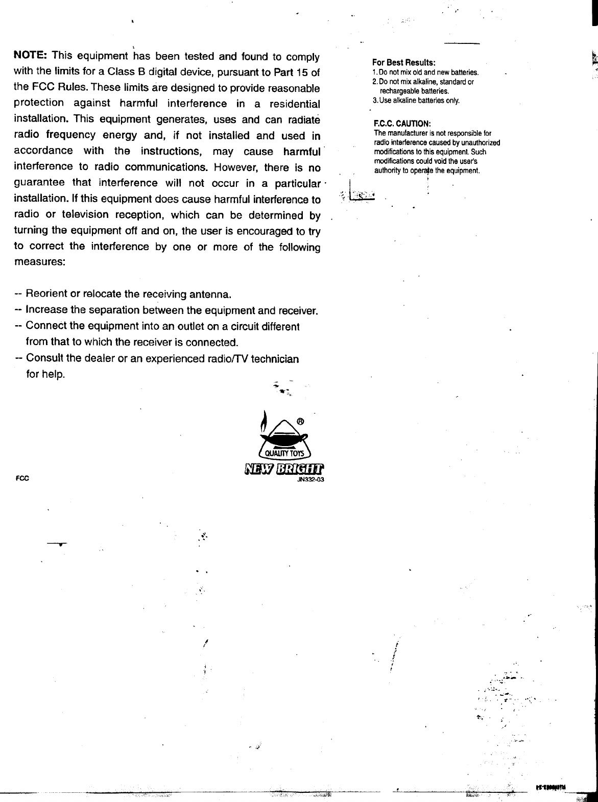 New Bright Co 8082H Radio Control Toy Transmitter User Manual