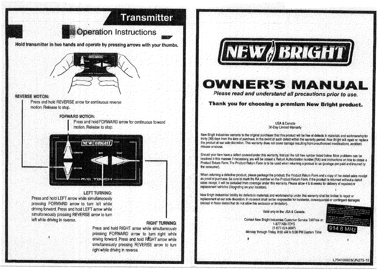 New Bright Co BT44-6 RC Toy Transmitter User Manual 2 max
