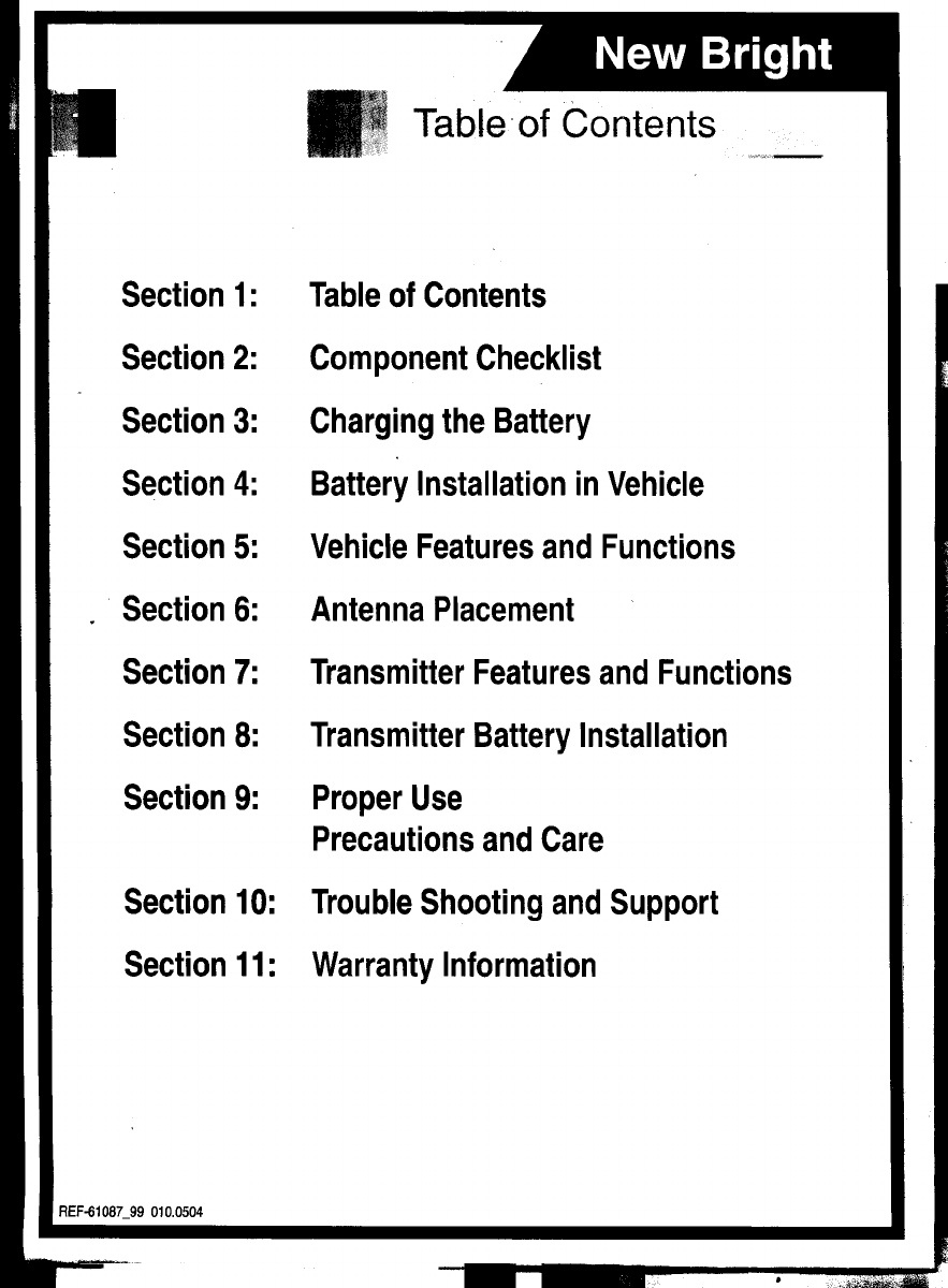 New Bright Co G21H Remote Controller for Toy User Manual Manual