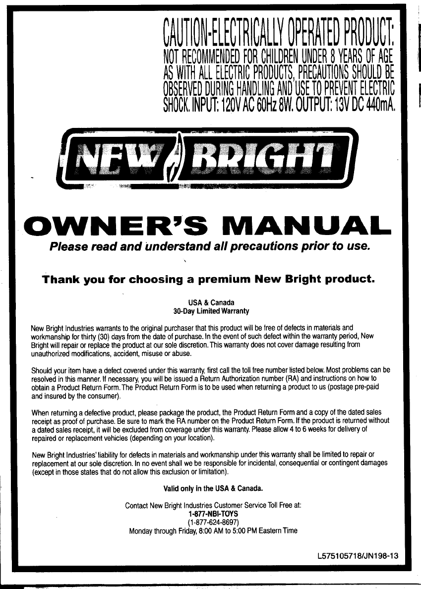 New Bright Industrial Co Ltd Remote Controller for Toy Manual