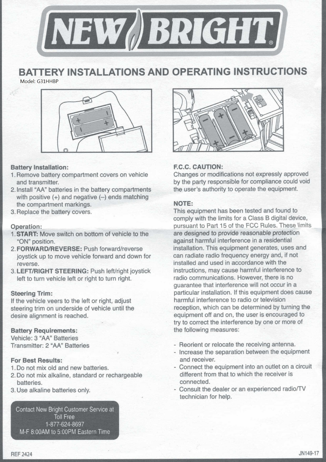 New Bright Co G31HHBP TOY Transmitter User Manual 2460 jpg