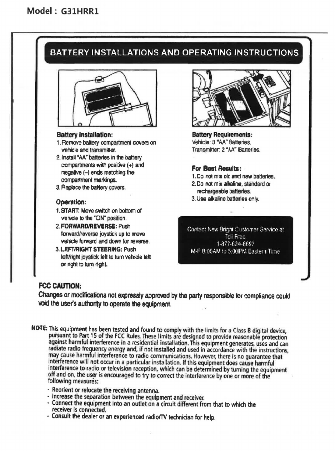 New Bright Co G31HRR1 TOY Transmitter User Manual