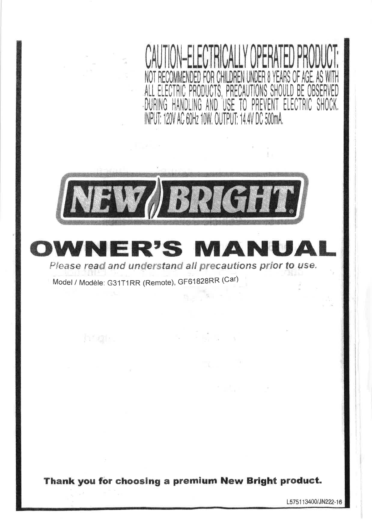 New Bright Co G31T1RR Toy Transmitter User Manual