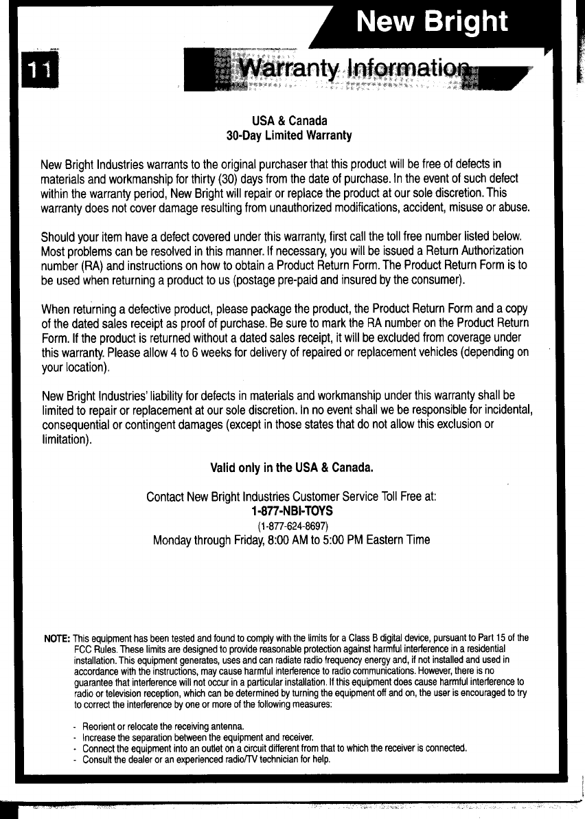 New Bright Co GF21H TOY Transmitter & Receiver User Manual FCC