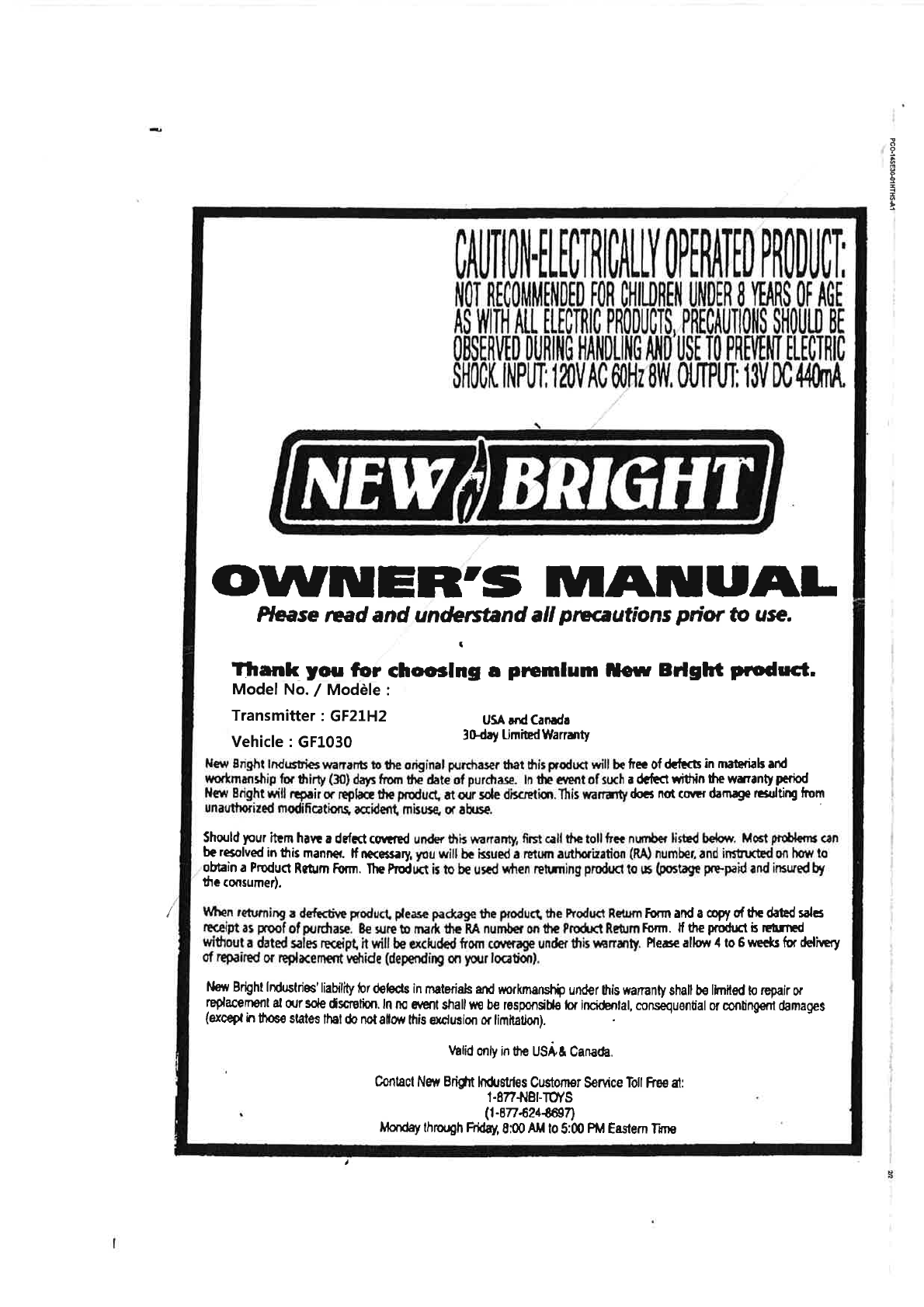 New Bright Co GF21H2 TOY Transmitter & Receiver User Manual 05