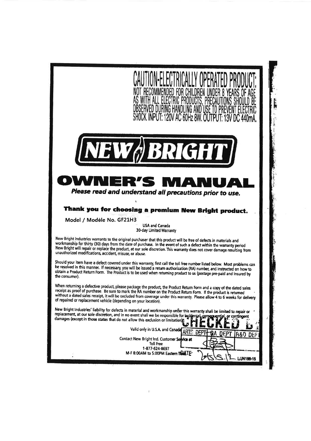 New Bright Co GF21H3 Radio Control Toy Transmitter User Manual Manual