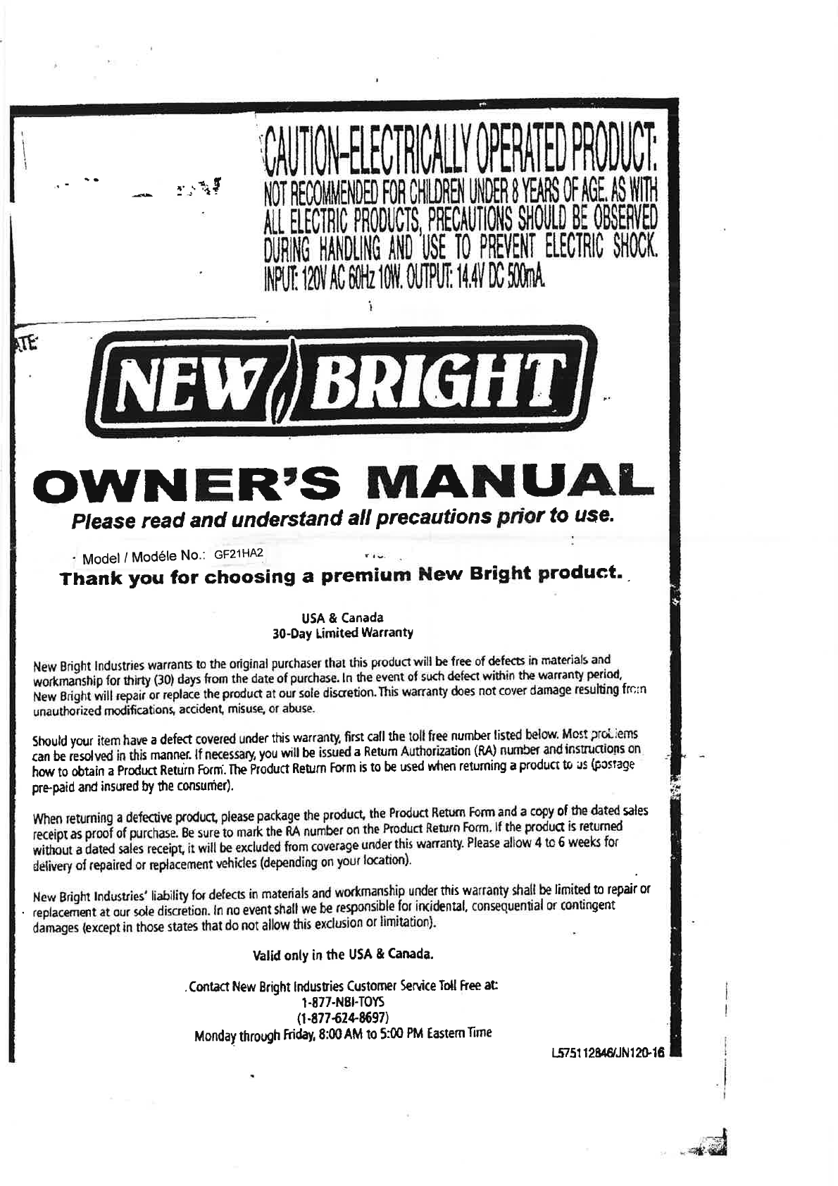 New Bright Co GF21HA2 TOY Transmitter & Receiver User Manual