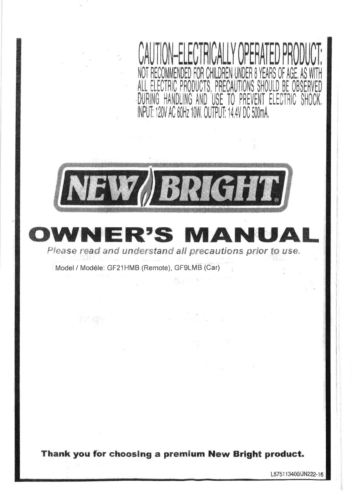 New Bright Co GF21HMB TOY Transmiter User Manual