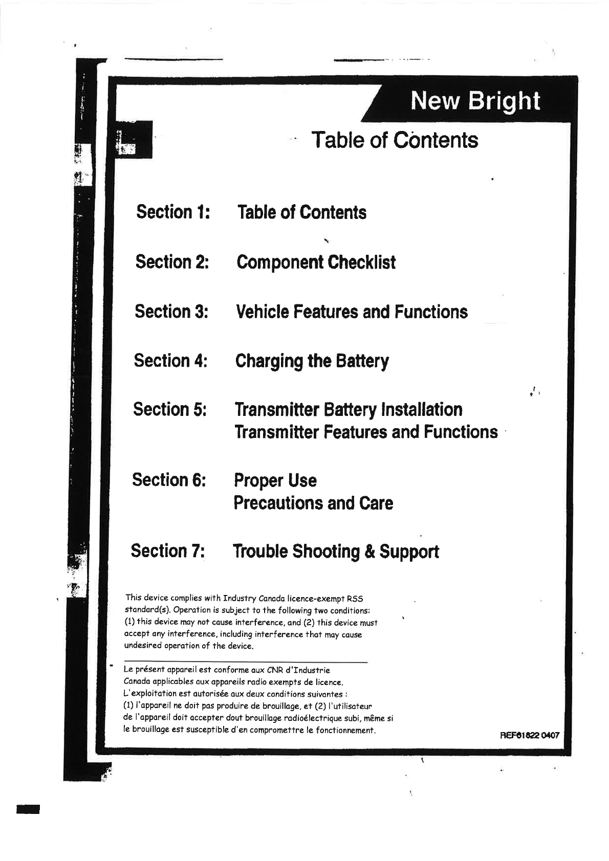 New Bright Industrial Co Ltd TOY Transmitter Manual