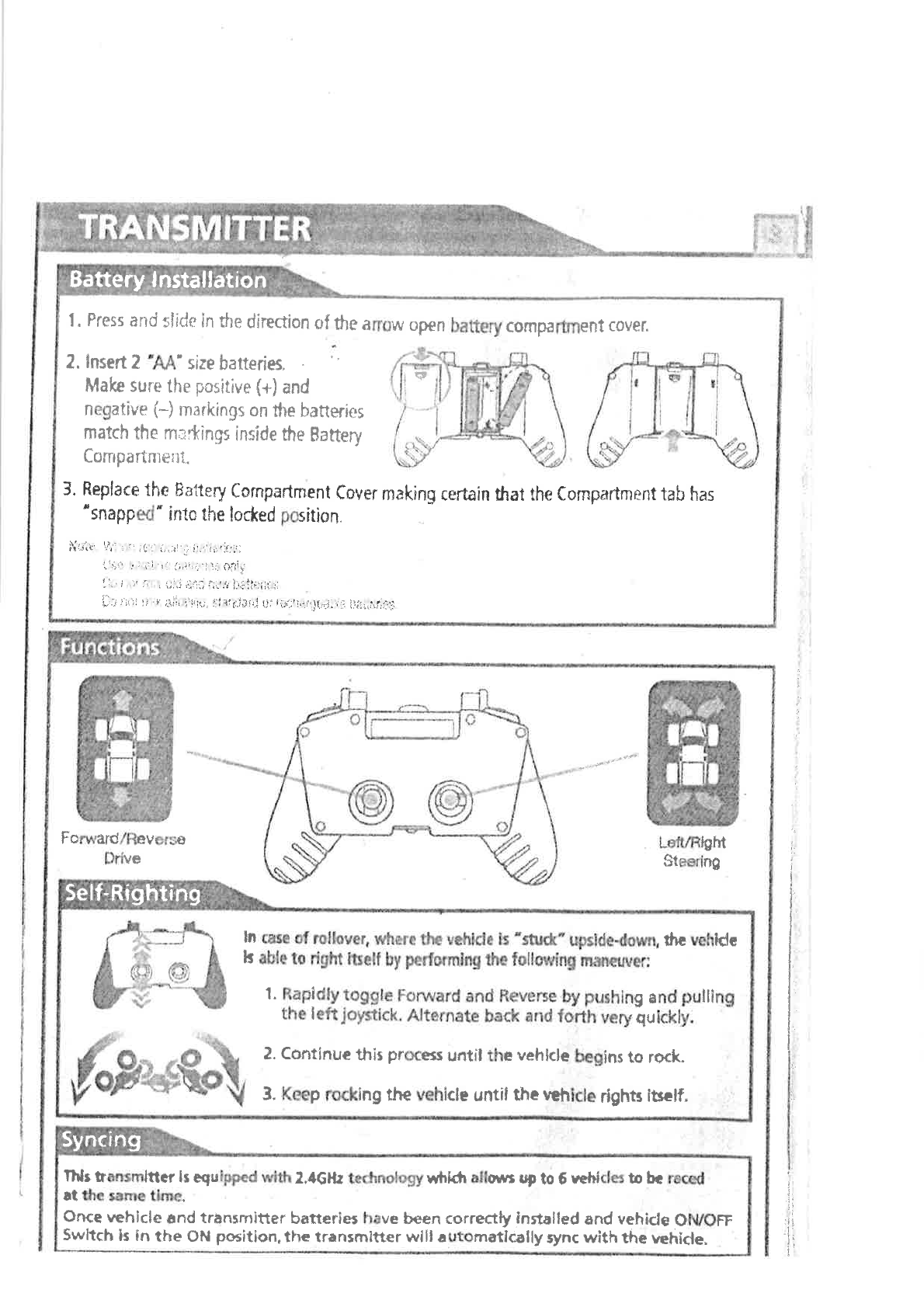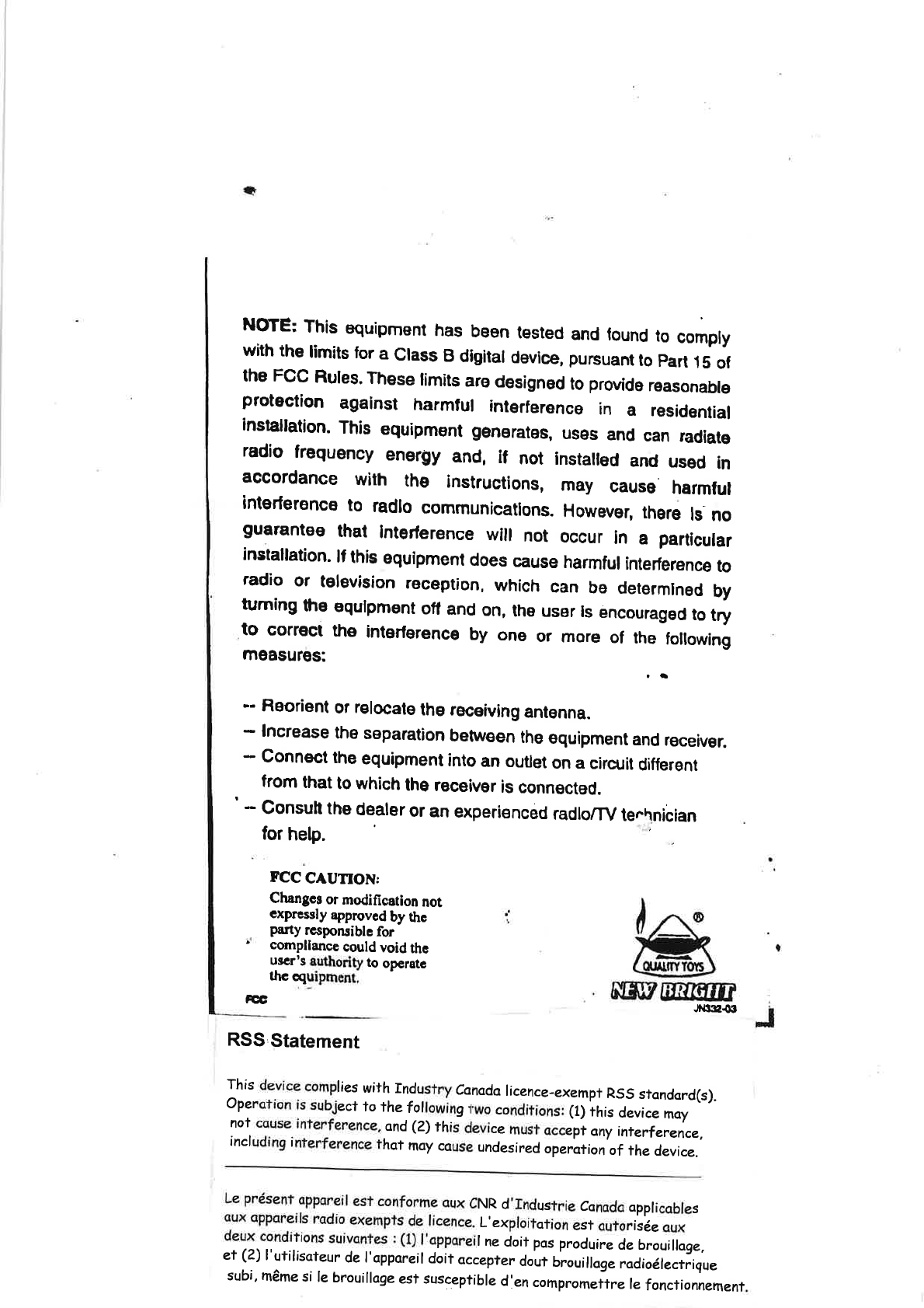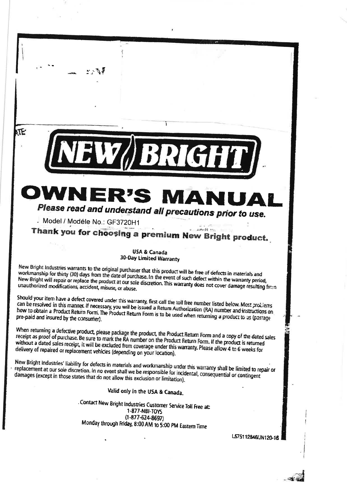 New Bright Co GF3720H1 TOY Transmitter User Manual