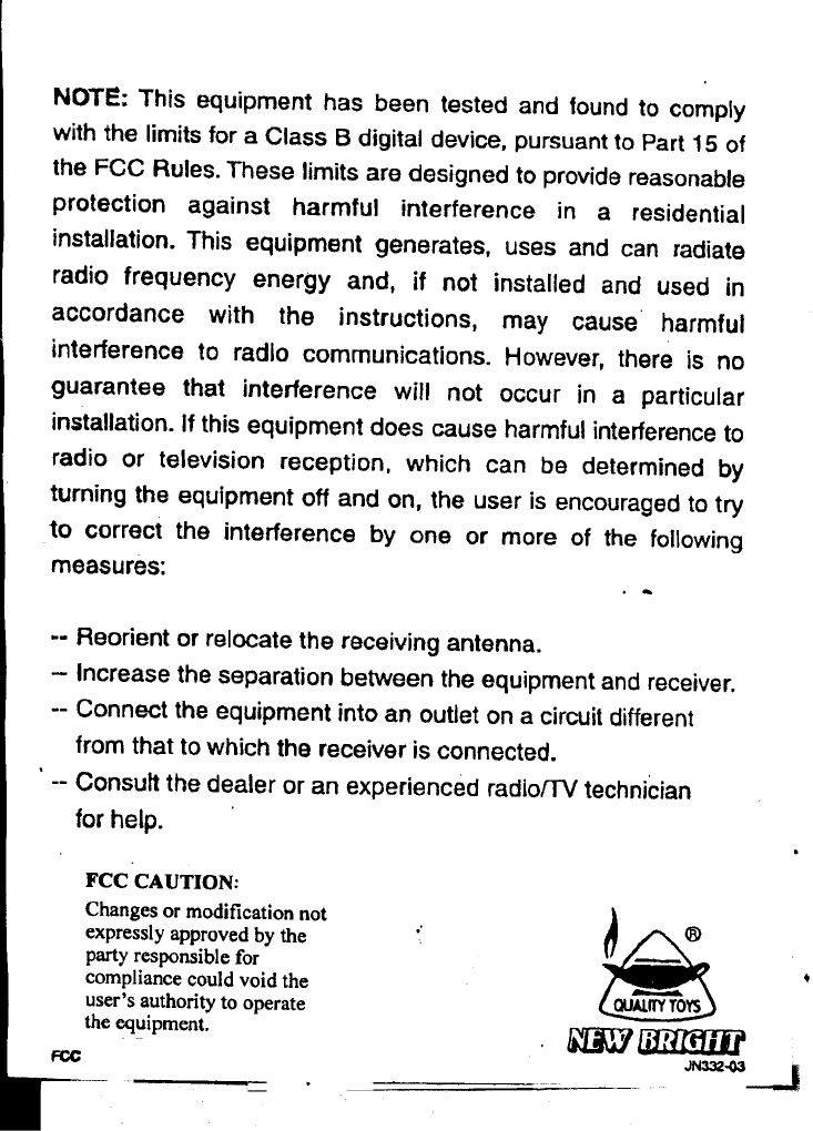 New Bright Co GF43360 TOY Transmitter & Receiver User Manual