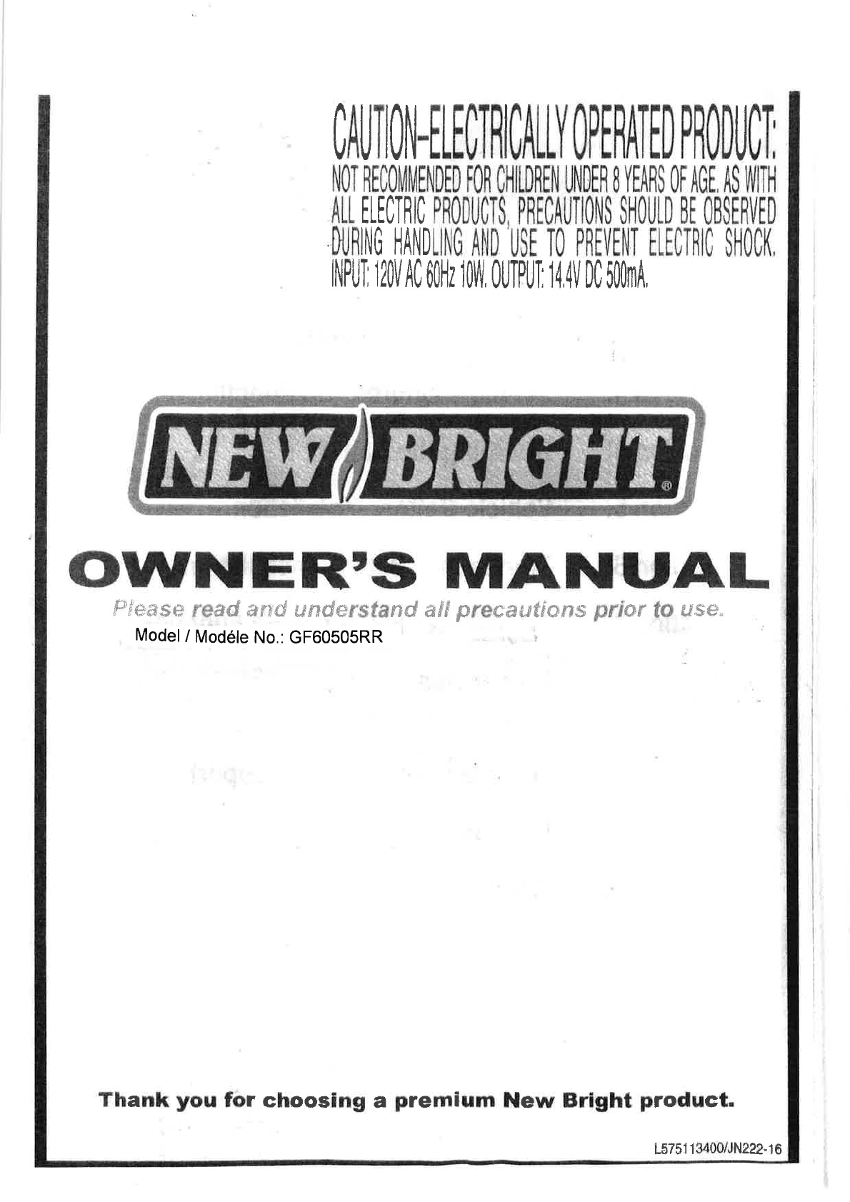 New Bright Co GF60505RR TOY Receiver User Manual