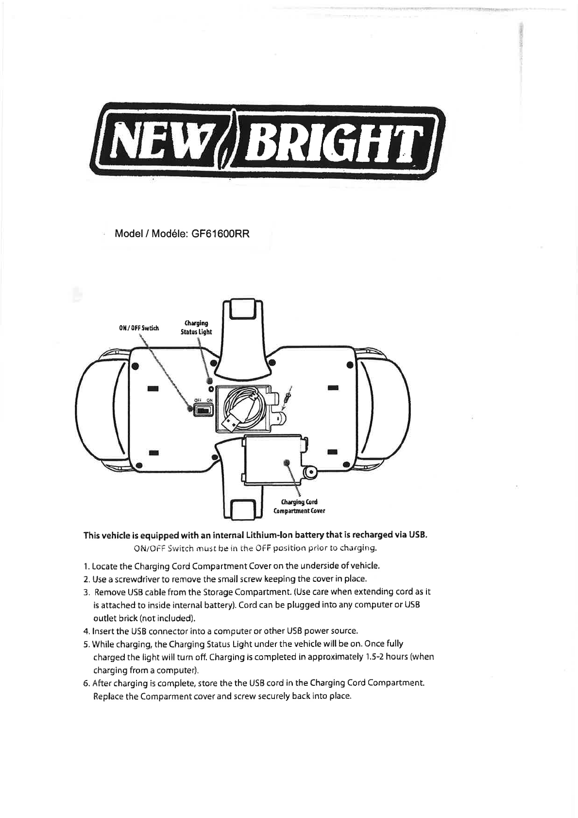 New Bright Co GF61600RR TOY Receiver User Manual